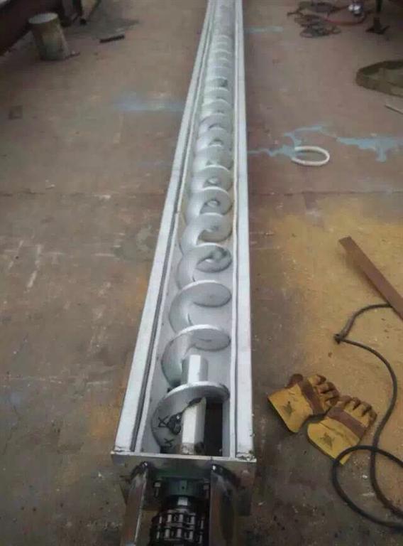 在管螺旋輸送機(jī)的卸料端蓋板上開設(shè)一防堵檢查門。嚴(yán)格執(zhí)行管式螺旋輸送機(jī)操縱規(guī)程,做到無載起動、空載泊車;_管式螺旋輸送機(jī)進(jìn)料連續(xù)均勻。發(fā)生阻塞時(shí),因?yàn)槲锪隙逊e,頂開防堵門,同的經(jīng)過管式螺旋輸送機(jī)行程開關(guān)堵截了輸送機(jī)的電源。盡可能縮小管式螺旋輸送機(jī)中心吊掛軸承的橫向尺寸的問題,以減少物料經(jīng)過管式螺旋輸送機(jī)中心軸承時(shí)堵料的可能。合理選擇管式螺旋輸送機(jī)的各項(xiàng)技術(shù)參數(shù),如慢速轉(zhuǎn)速要控制得到。