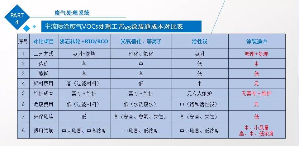噴涂廢氣VOCs:中低成本投入,運行和維護成本極低。